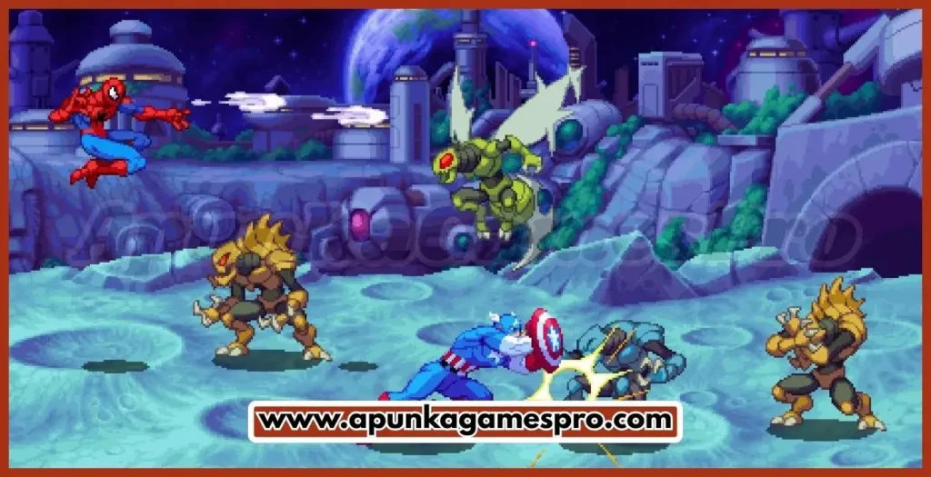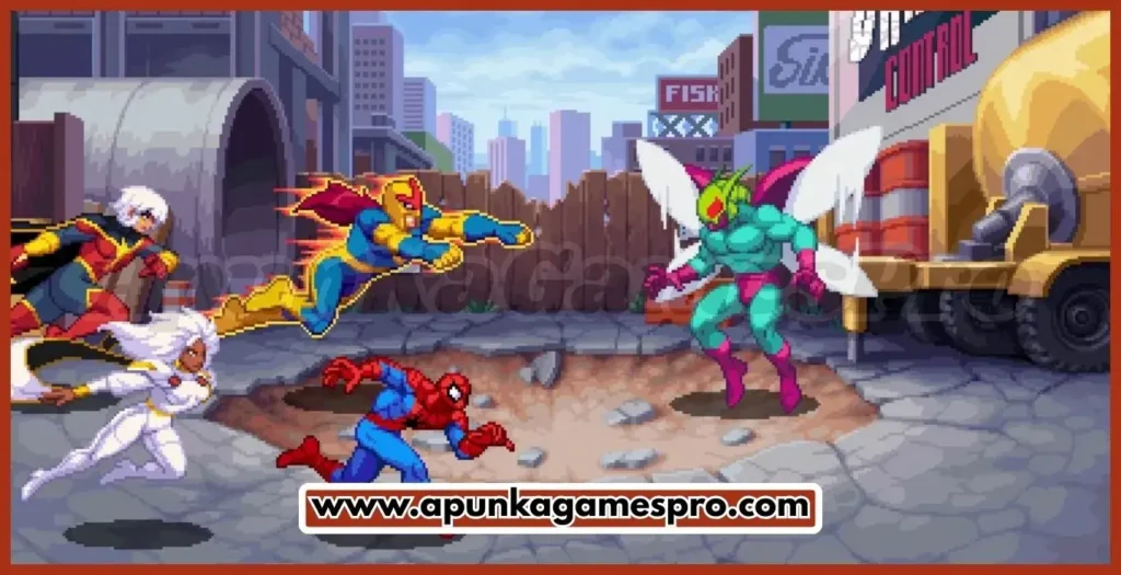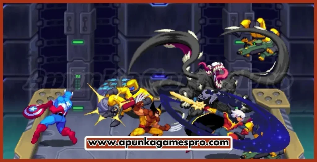 - Classic arcade-style beat ’em up gameplay with retro pixel-art visuals, paying homage to older Marvel arcade games while introducing modern polish.