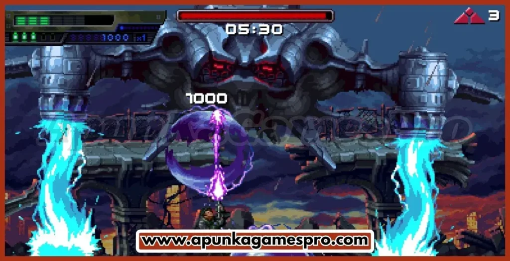 Players navigate diverse 2D environments, defeating waves of enemies and bosses. The game features side-scrolling combat, weapon upgrades, and fast reflex challenges. Timing, strategy, and exploration are key for progressing through missions.
