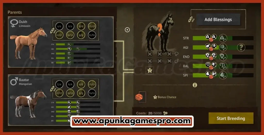 - Realistic horse bonding, training, and breeding system
